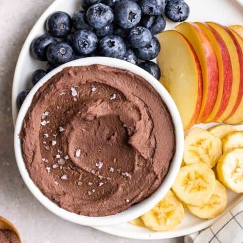 Rich, creamy, and decadent, this dark chocolate hummus is a must-have dip to have on hand! It is quick to make and is ready in 5 minutes.